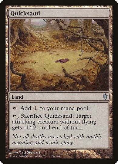{T}, Sacrifice Quicksand: Target attacking creature without flying gets -1/-2 until end of turn.