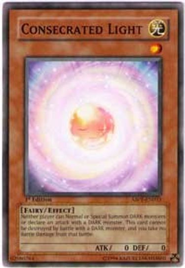 Description: Neither player can Normal Summon or Special Summon DARK monsters or declare an attack with a DARK monster. This card cannot be destroyed by battle with a DARK monster, and you take no Battle Damage from that battle.