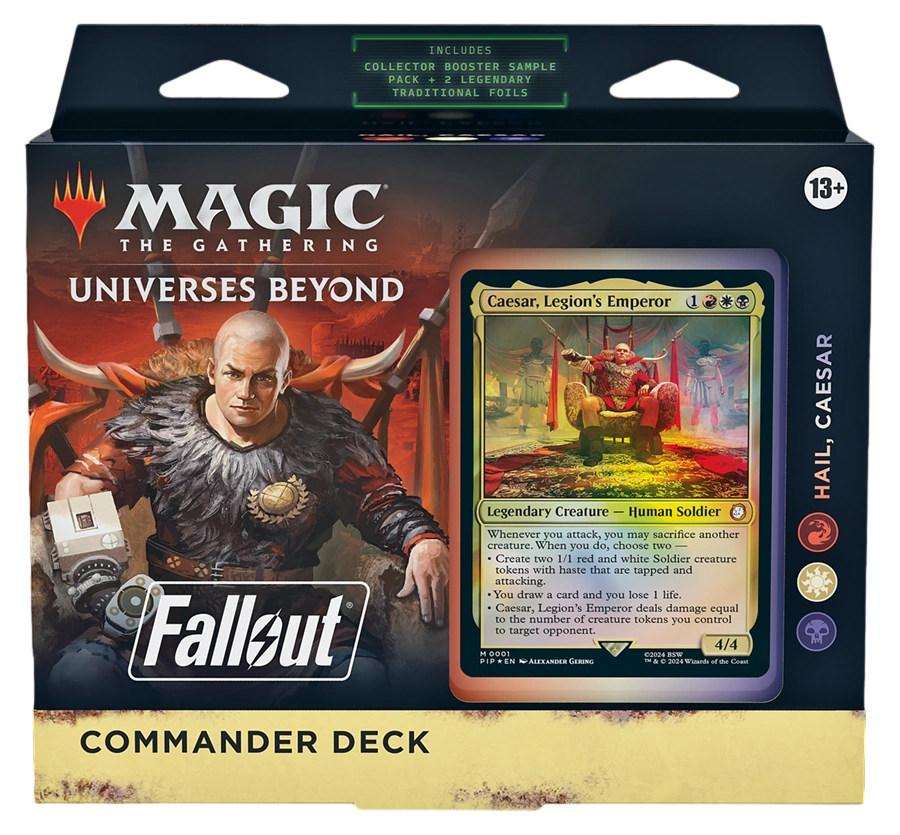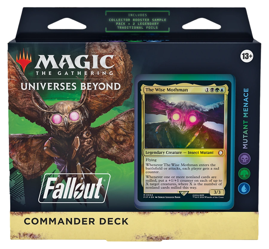 • COLLECT SPECIAL FALLOUT CARD TREATMENTS—Each deck comes with a Collector Booster Sample pack containing 2 special alt-frame cards, including 1 Rare or Mythic Rare card