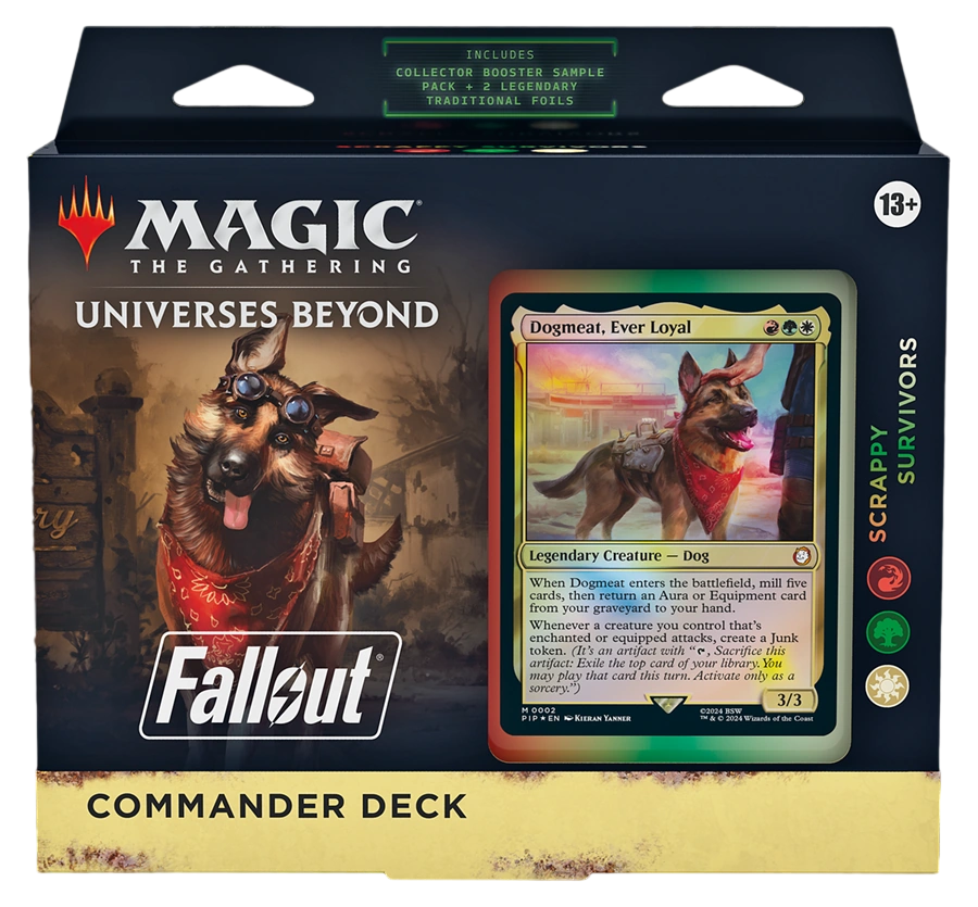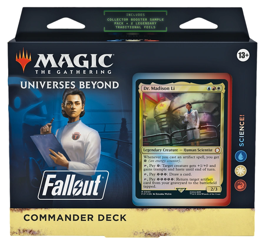 • THE VAULTS ARE OPEN—Journey through the wastes with four 100-card decks, each introducing never-before-seen Magic cards featuring fan-favorite characters, thematic game mechanics, and art that explores the post-nuclear world of the Fallout series
