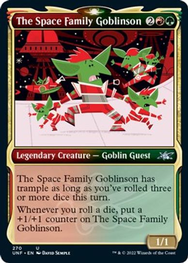 Whenever you roll a die, put a +1/+1 counter on The Space Family Goblinson.