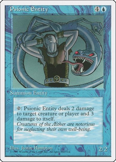 Description: T: Psionic Entity deals 2 damage to target creature or player and 3 damage to itself.