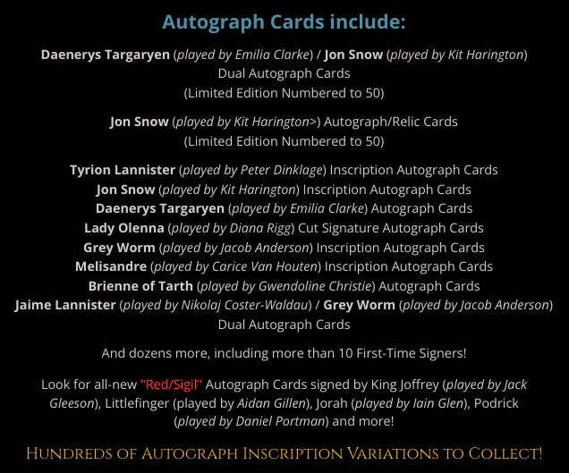 - Kit Harington (Jon Snow) Autograph/Relic Cards