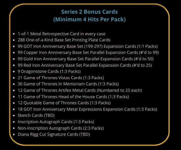 - 18 GOT Iron Anniversary Metal Expressions Expansion Cards (1:3 Packs)
