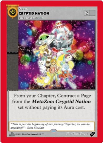 Description: From your Chapter, Contract a Page from the MetaZoo: Cryptid Nation set without paying its Aura cost.