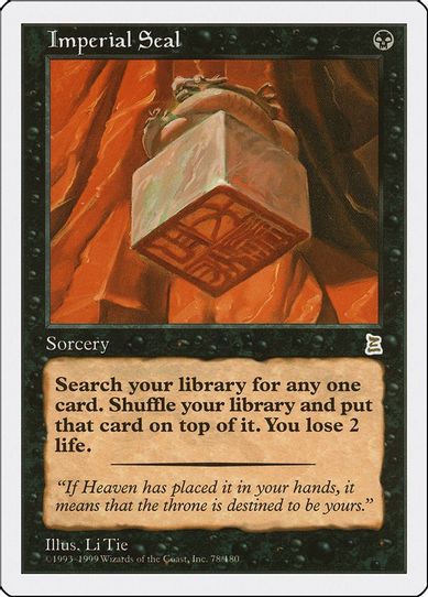 Description: Search your library for any one card. Shuffle your library and put that card on top of it. You lose 2 life.