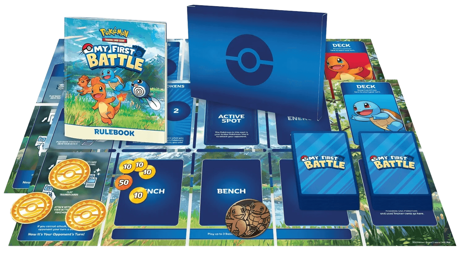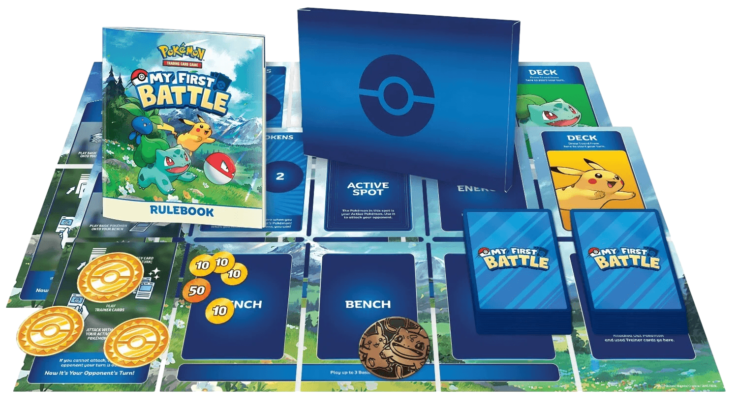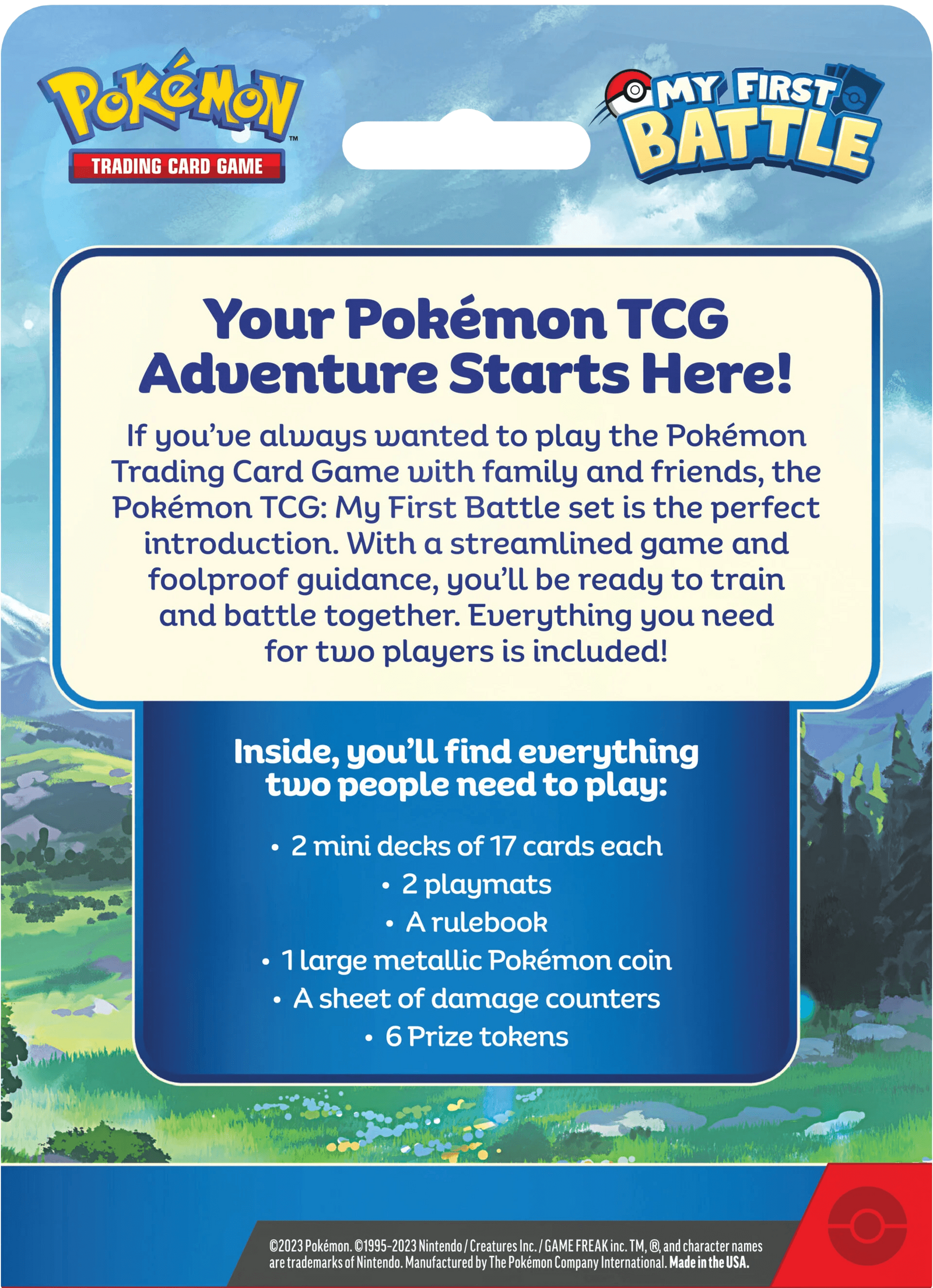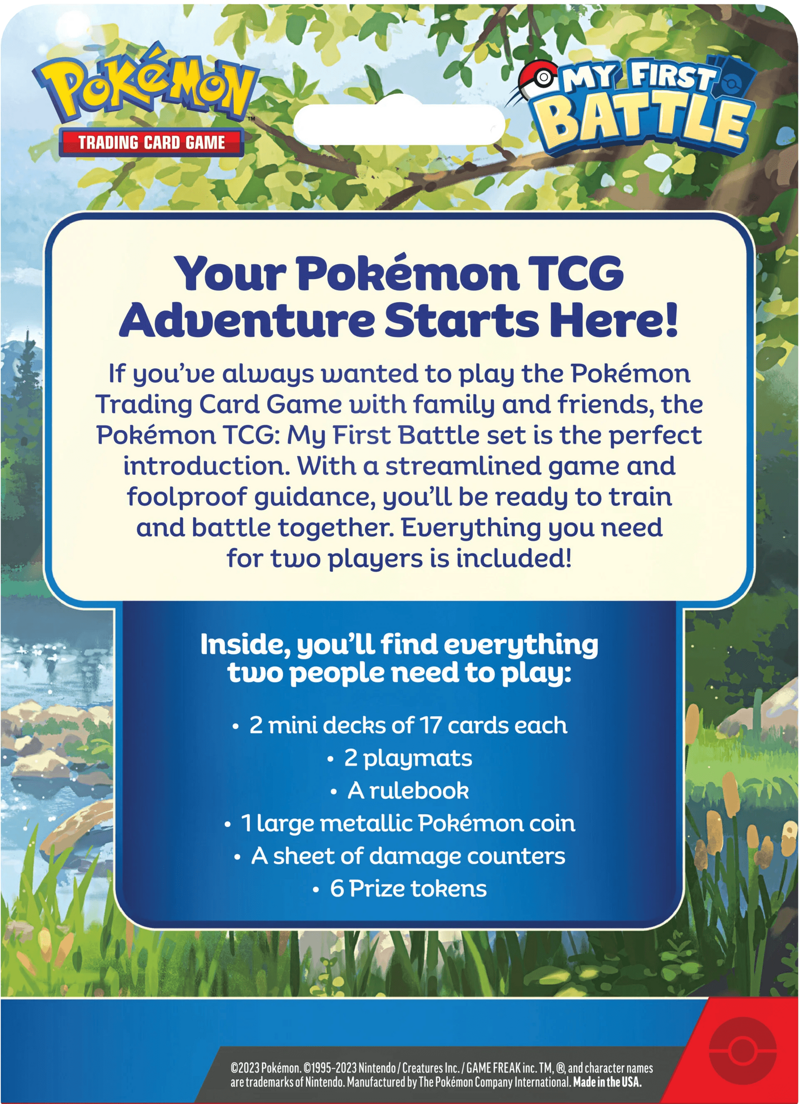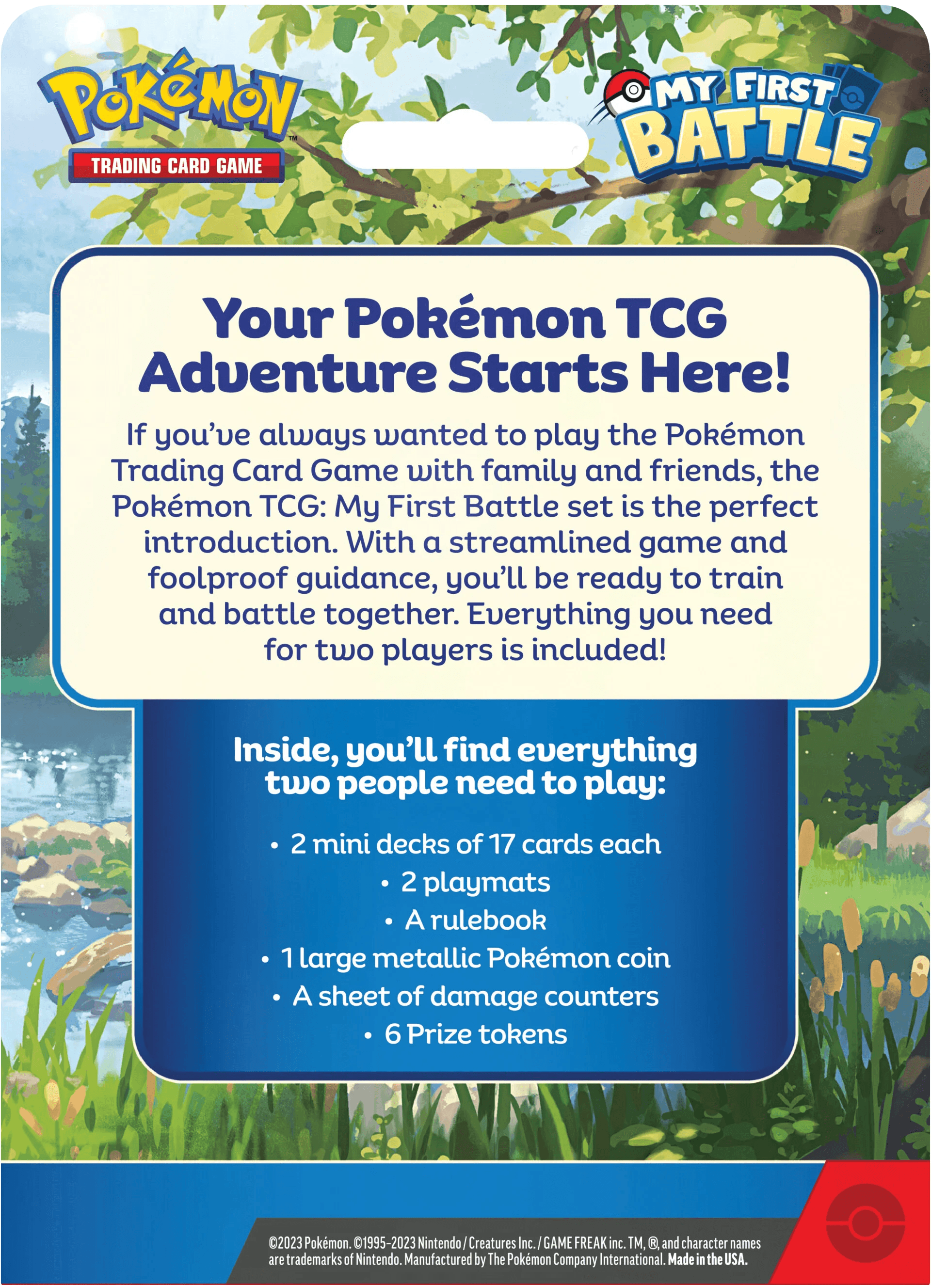 If you've always wanted to play the Pokémon Trading Card Game with family and friends, the Pokémon TCG: My First Battle set is the perfect introduction. With a streamlined game and foolproof guidance, you'll be ready to train and battle together. Everything you need for two players is included!