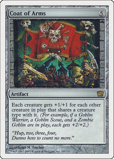 Description: Each creature gets +1/+1 for each other creature in play that shares a creature type with it. (For example, if a Goblin Warrior, a Goblin Scout, and a Zombie Goblin are in play, each gets +2/+2.)