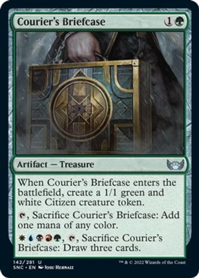 WUBRG, T, Sacrifice Courier's Briefcase: Draw three cards.