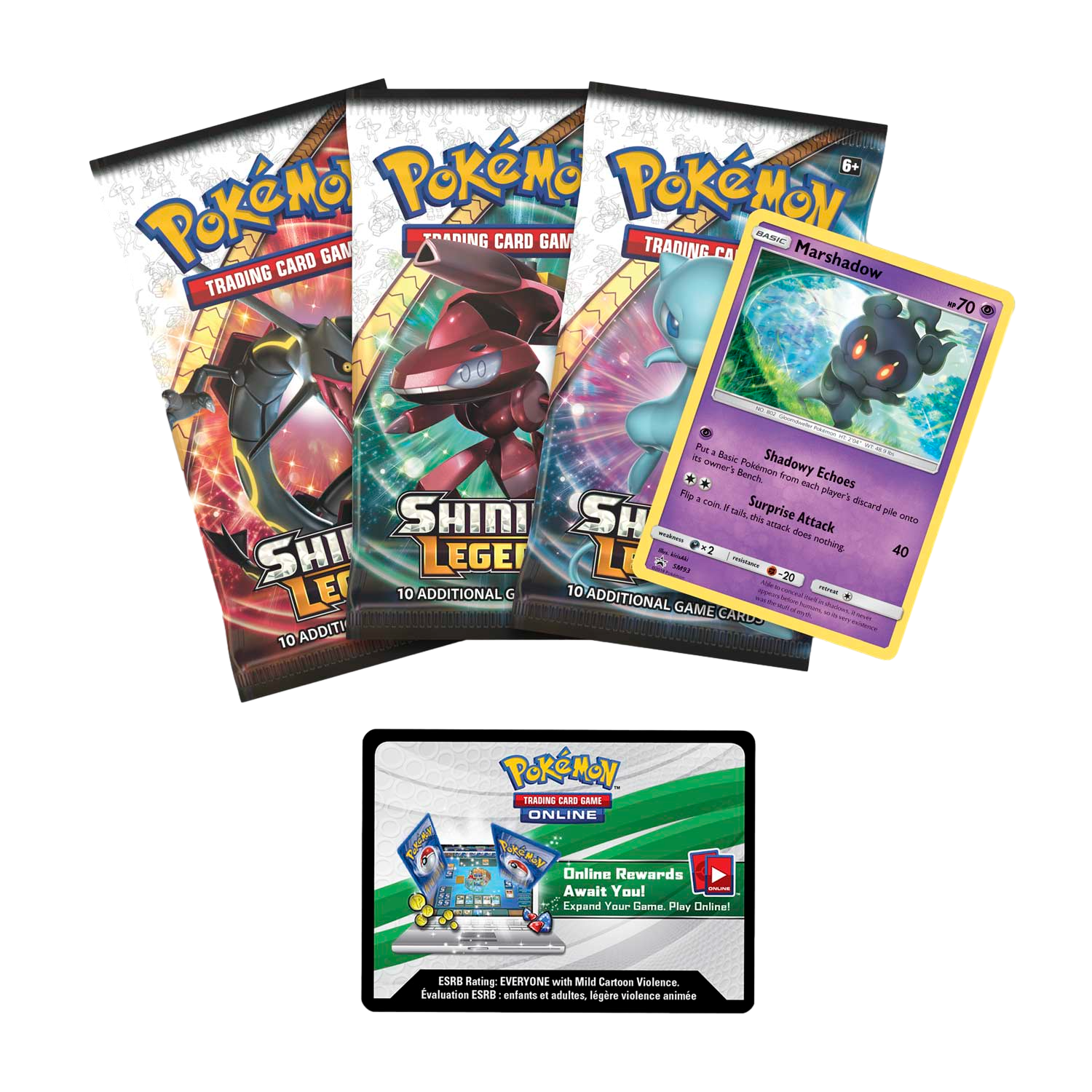 • 3 Pokémon TCG: Shining Legends booster packs, each containing 10 cards and 1 basic Energy