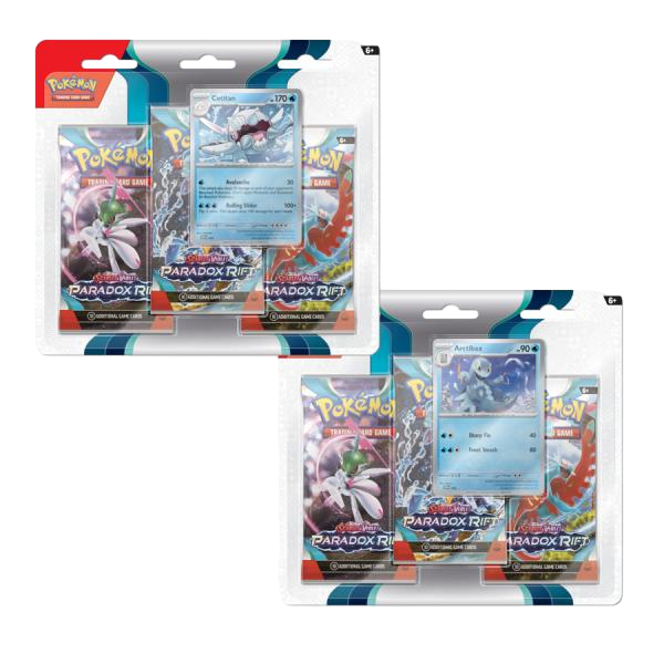 Dive into the clouds and explore a land that appears to be unbound by time! With ferocious attacks, Ancient Pokémon like Roaring Moon ex and Sandy Shocks ex appear alongside artificial Future Pokémon like Iron Valiant ex and Iron Hands ex. Meanwhile, Garchomp ex, Mewtwo ex, and others Terastallize to gain new types, as Armarouge ex, Gholdengo ex, and more Pokémon ex join the fray. Adventure awaits as timelines collide in the Pokémon TCG: Scarlet & Violet—Paradox Rift expansion!