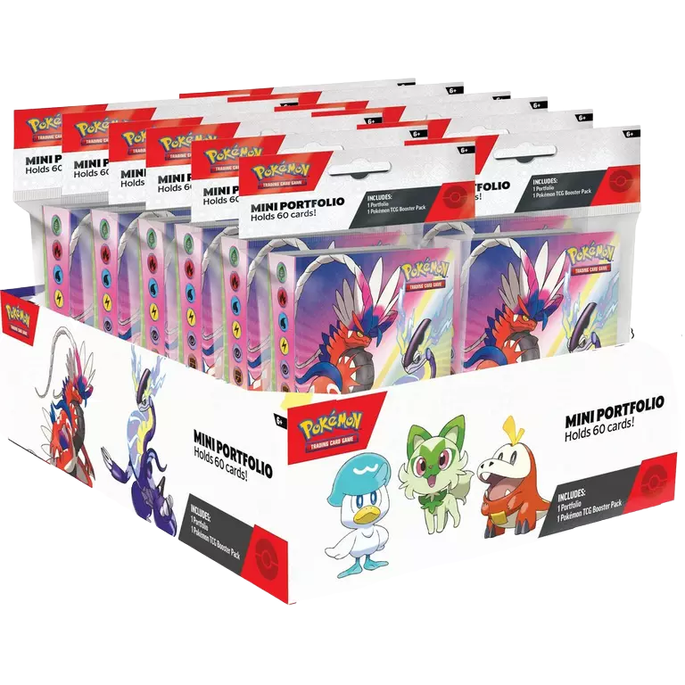 Store Your Cards in Style! Store up to 60 of your latest and greatest Pokémon cards in this mini portfolio. Each portfolio comes with a booster pack from the new Pokémon TCG:Scarlet & Violet expansion, so you can start filling it up right away!