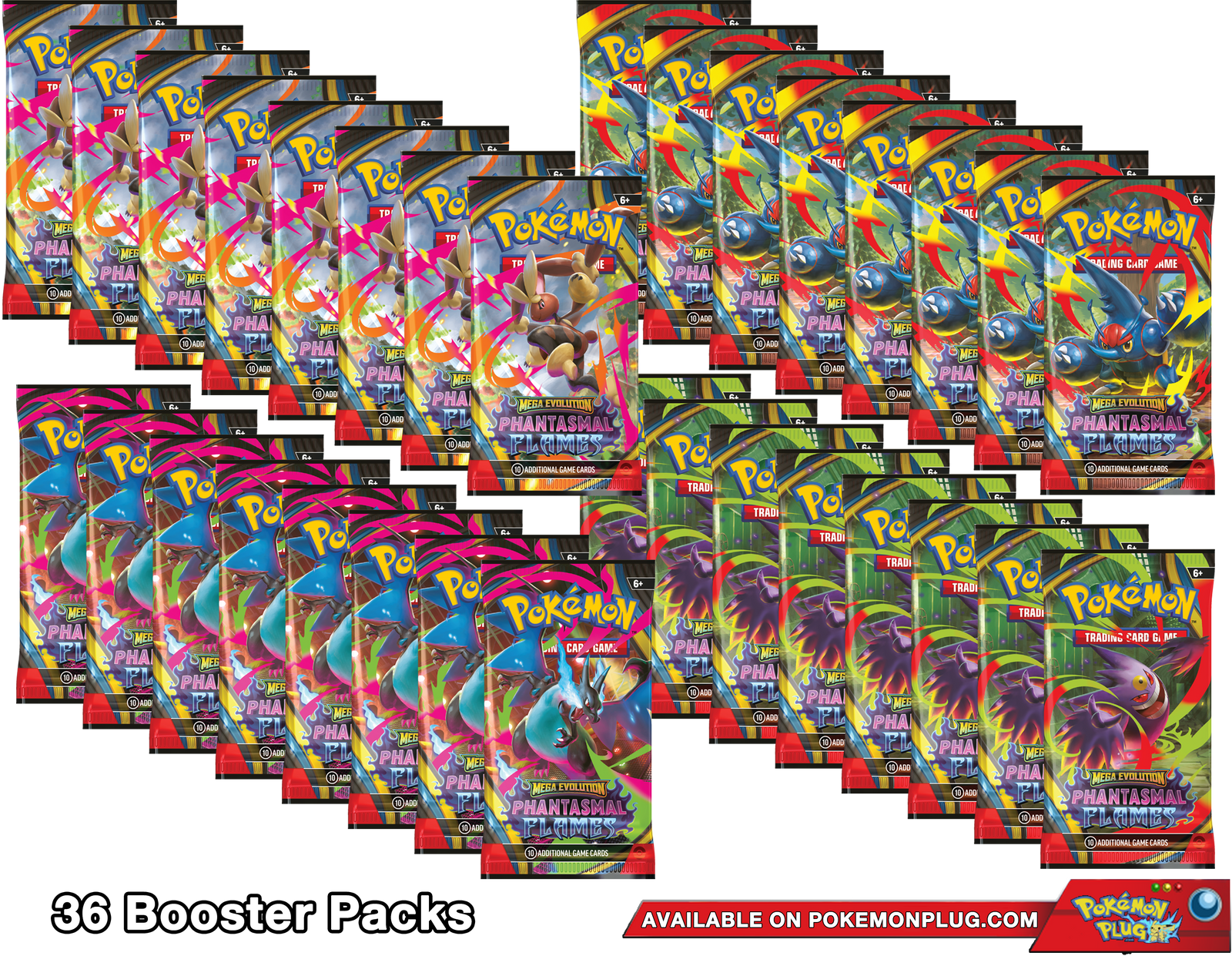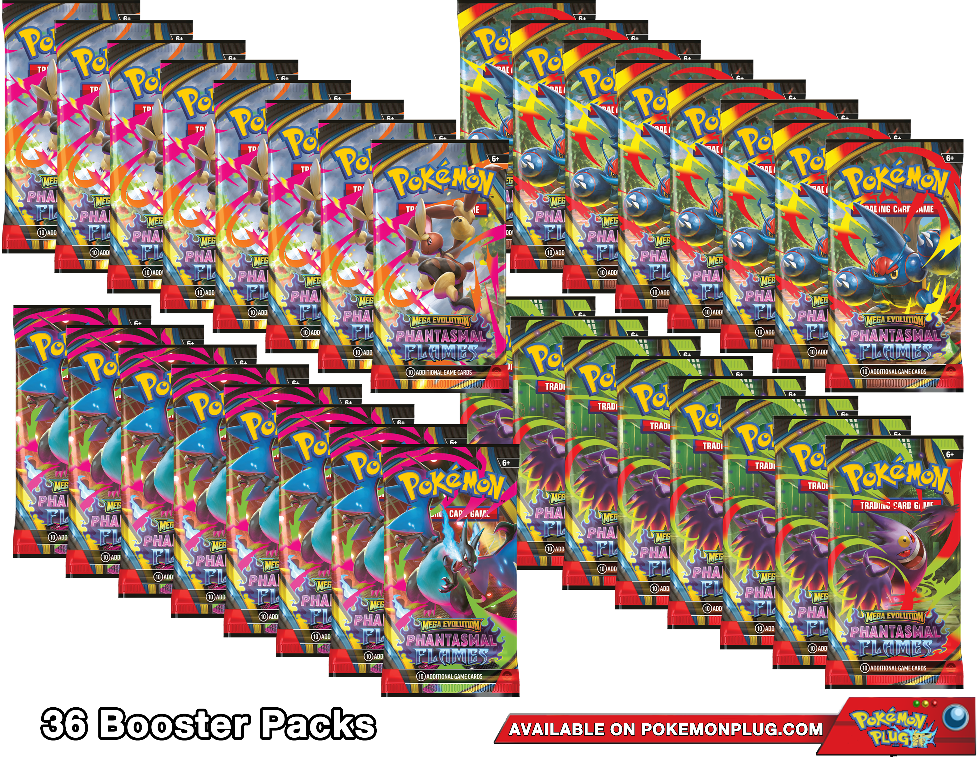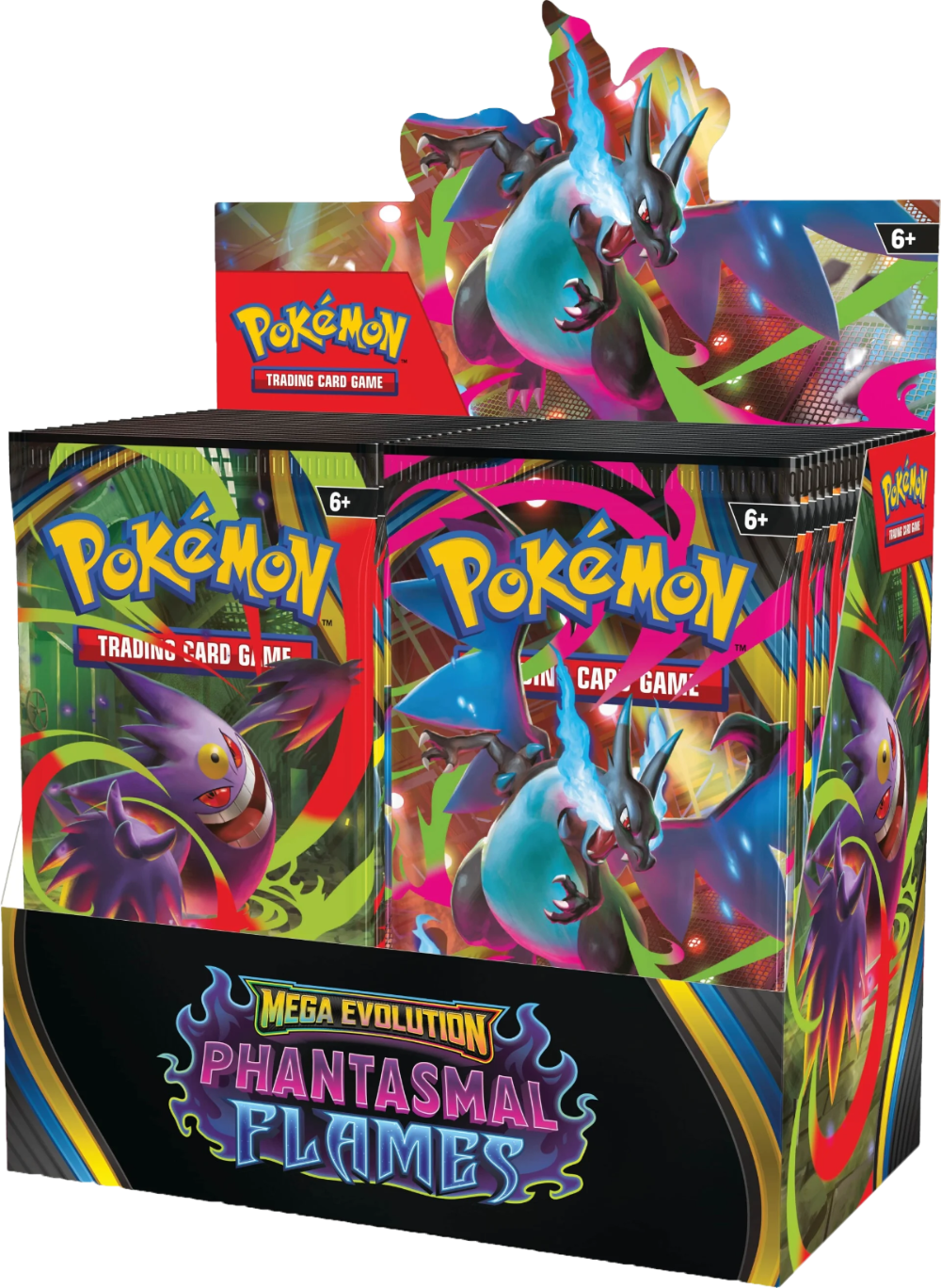 Shadow-step into battle and supercharge your collection with the Pokémon TCG: Mega Evolution Phantasmal Flames booster box! Each box is packed with 36 sealed booster packs, giving you hundreds of chances to discover powerful Mega Evolution Pokémon and highly sought-after chase pulls. Hunt for legendary cards like Mega Charizard X ex and Mega Gengar ex, while expanding your deck with even more powerhouse favorites such as Mega Heracross ex and Mega Lopunny ex. Be on the hunt for dazzling SAR cards and rare holo foils that make this Phantasmal Flames expansion booster box a must-have centerpiece for collectors and competitive players alike.