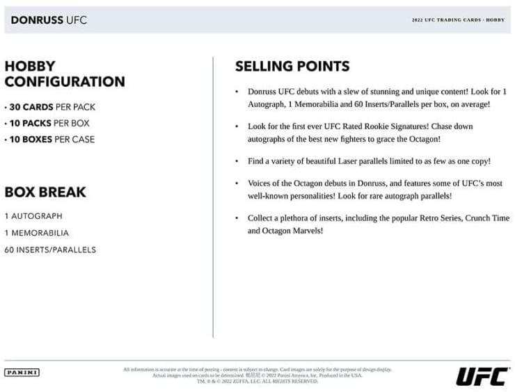2022 Don Russ UFC Hobby Box (10 Packs/30 Cards: 1 Auto, 1 Mem)