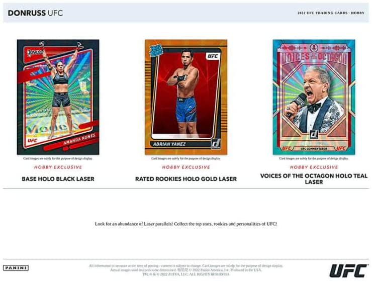 LASER PARALLELS: Look for an abundance of Laser parallels! Collect the top stars, rookies and personalities of UFC!