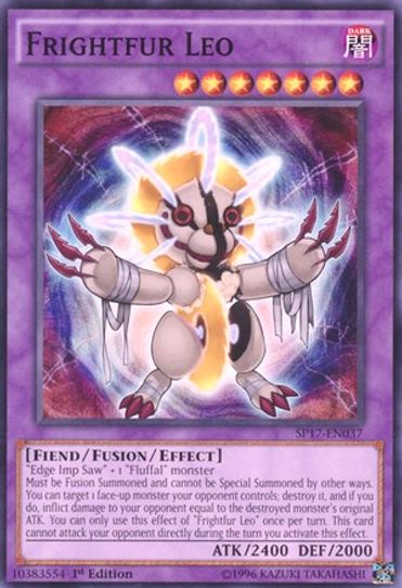 Must be Fusion Summoned and cannot be Special Summoned by other ways. You can target 1 face-up monster your opponent controls; destroy it, and if you do, inflict damage to your opponent equal to the destroyed monster's original ATK. You can only use this effect of "Frightfur Leo" once per turn. This card cannot attack your opponent directly during the turn you activate this effect.