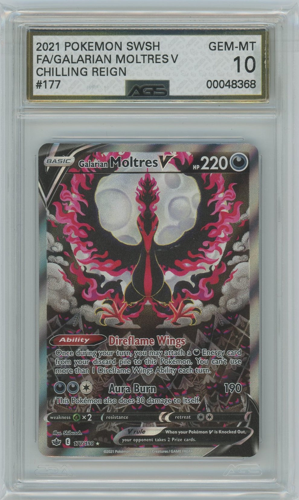 AGS (GEM-MT 10) Galarian Moltres V #177 - Chilling Reign (#00048368)