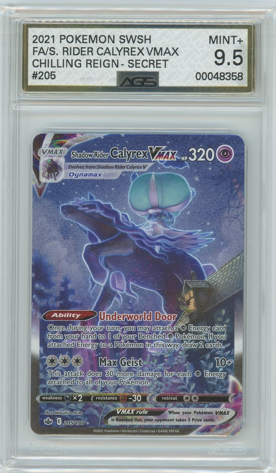 AGS (MINT+ 9.5) Shadow Rider Calyrex VMAX #205 - Chilling Reign (#00048358)