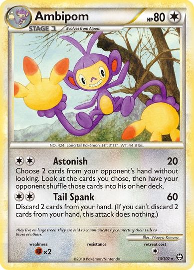 Attack 2: [2] Tail Spank (60) Discard 2 cards from your hand. (If you can't discard 2 cards from your hand, this attack does nothing.)