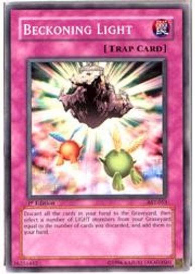 Description: Discard all the cards in your hand to the Graveyard, then select a number of LIGHT monsters from your Graveyard equal to the number of cards you discarded, and add them to your hand.