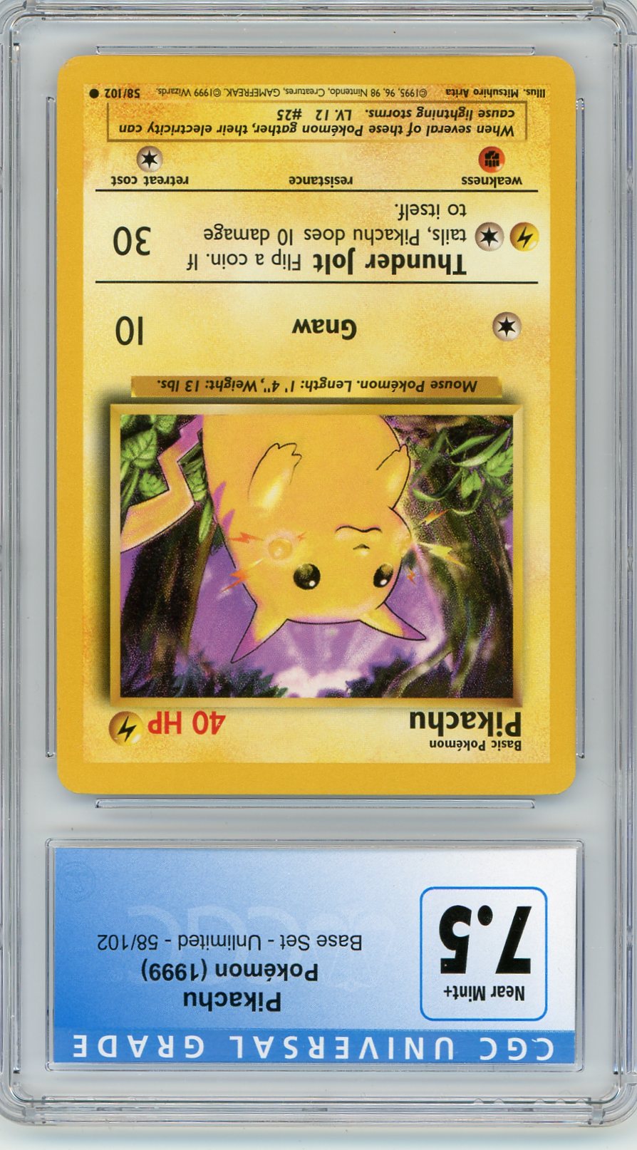 CGC 7.5 Near Mint+ Pikachu 50/102 - Base Set 1999
