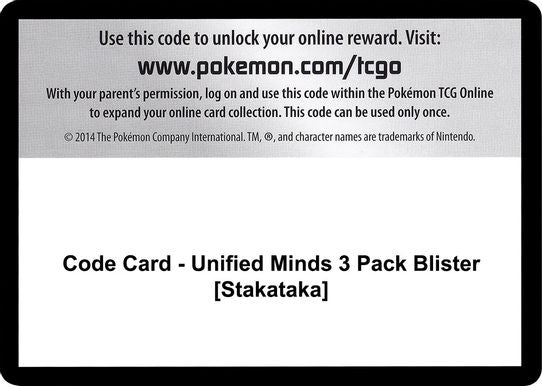 Code Card - Unified Minds 3 Pack Blister [Stakataka] [Sun & Moon: Unified Minds]