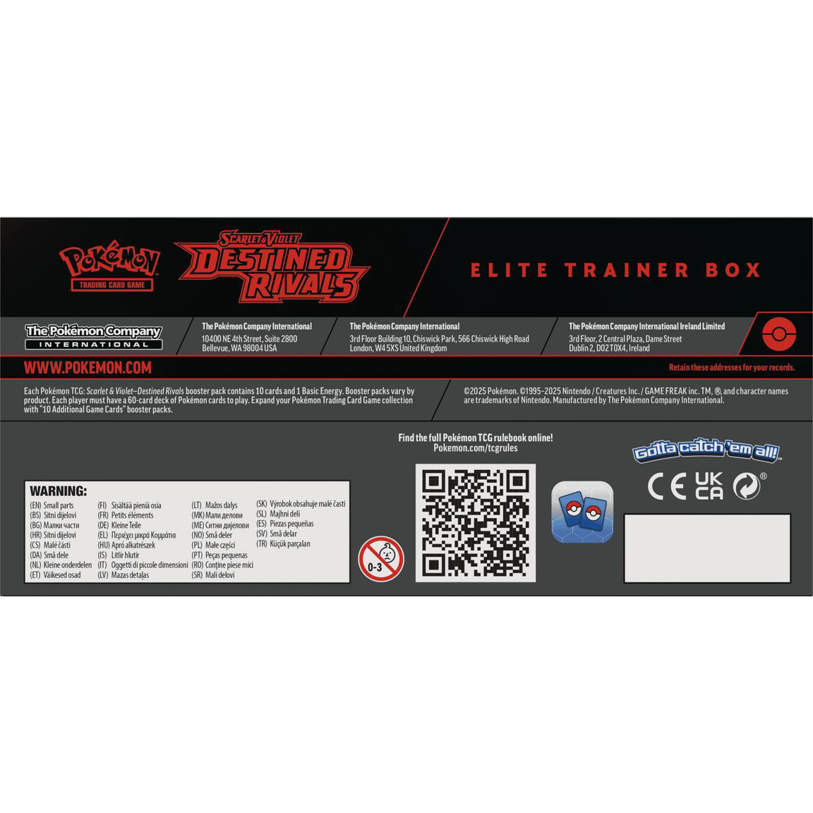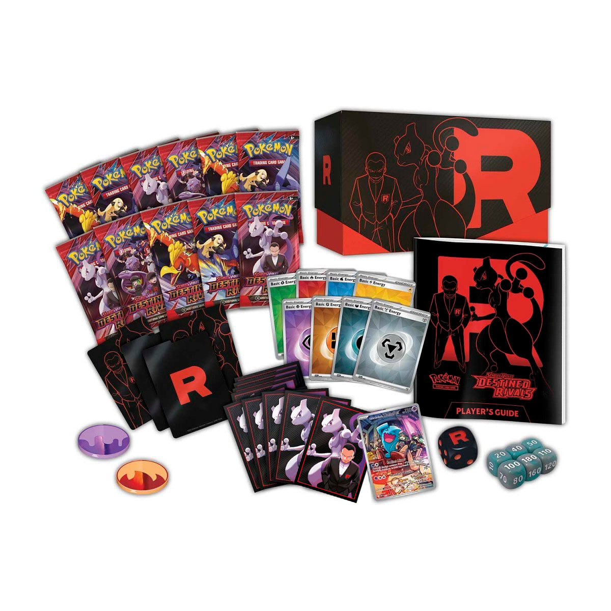 Whose Side Are You On? Pokémon Trainers, be on high alert! The nefarious Team Rocket is setting its latest plan into motion, and heroic Trainers are racing to stop it. Join forces with the likes of Cynthia and Garchomp ex, Ethan and Ho-Oh ex, or Arven and Mabosstiff ex… Or reconsider your loyalties and fight alongside Team Rocket’s Pokémon like Mewtwo ex—under the command of Giovanni! Choose a side, assemble your allies, and battle boldly in the Pokémon TCG: Scarlet & Violet—Destined Rivals expansion!