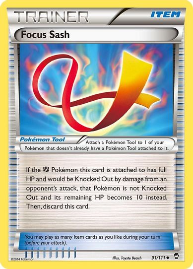 Card Text: If the Fighting Pokémon this card is attached to has full HP and would be Knocked Out by damage from an opponent's attack, that Pokémon is not Knocked Out and its remaining HP becomes 10 instead. Then, discard this card.