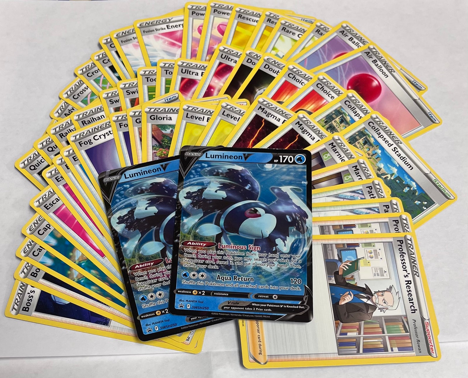 - More than 50 useful cards to power up your decks, including dozens of Trainer cards, 6 Special Energy cards, and 2 copies of Lumineon V