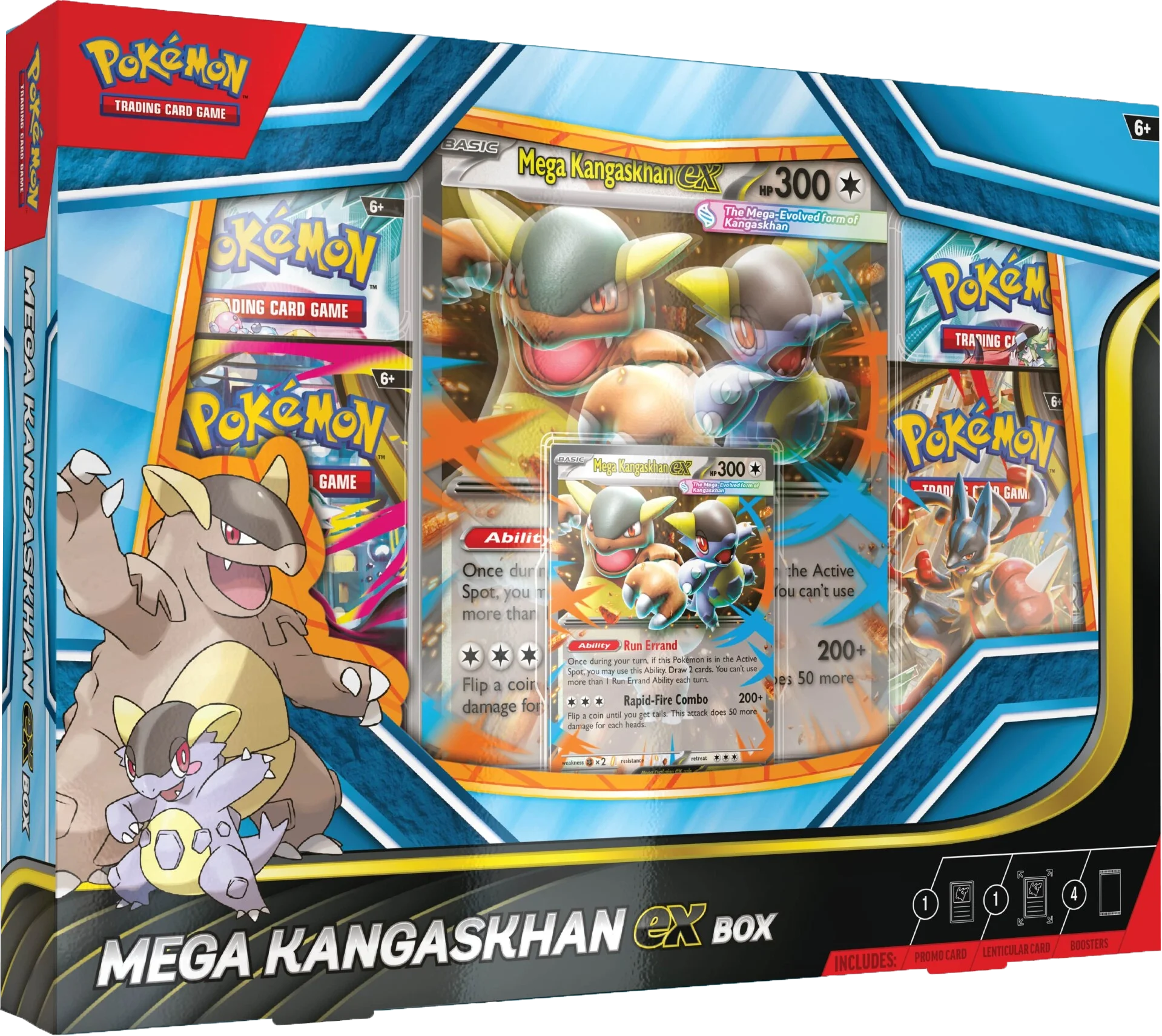 The Pokémon TCG: Mega Kangaskhan ex Box includes:
