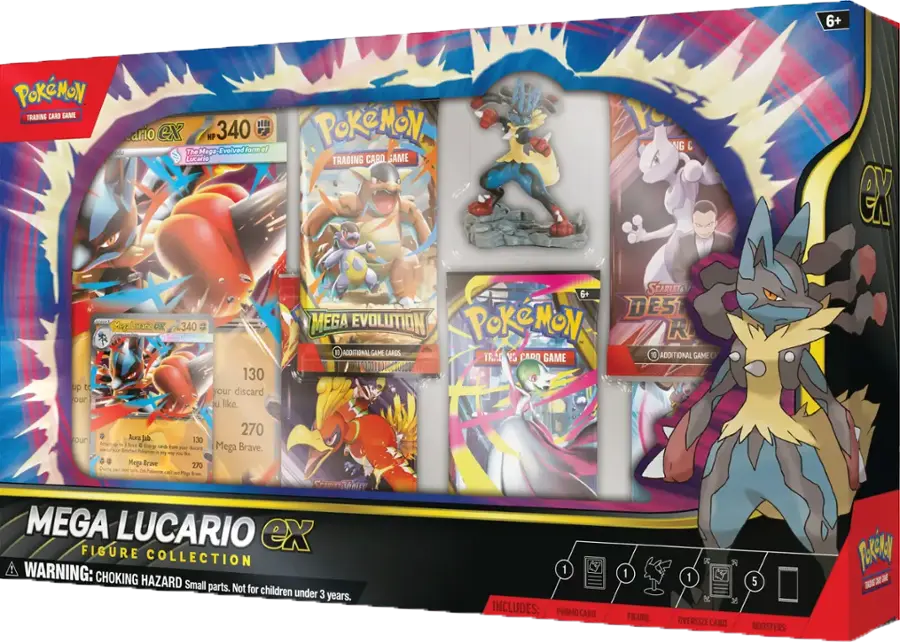 The Pokémon TCG: Mega Lucario ex Figure Collection includes: