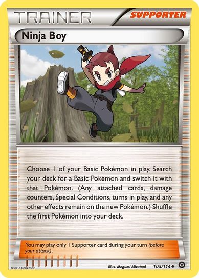 Card Text: Choose 1 of your Basic Pokemon in play. Search your deck for a Basic Pokemon and switch it with that Pokemon. (Any attached cards, damage counters, Special Conditions, turns in play, and any other effects remain on the new Pokemon.)