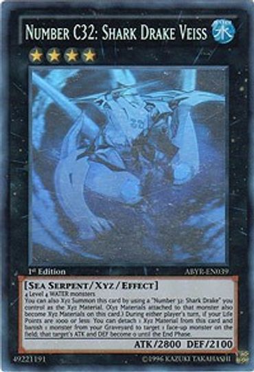 You can also Xyz Summon this card by using a "Number 32: Shark Drake" you control as the Xyz Material. (Xyz Materials attached to that monster also become Xyz Materials on this card.) During either player's turn, if your Life Points are 1000 or less: You can detach 1 Xyz Material from this card and banish 1 monster from your Graveyard to target 1 face-up monster on the field; that target's ATK and DEF become 0 until the End Phase.