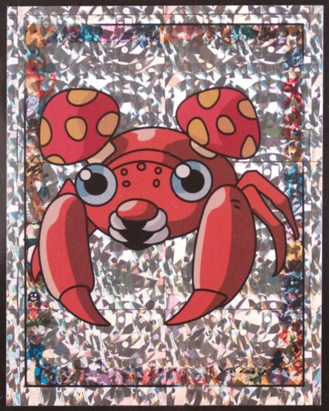 Stickers numbered 1-150 each have a Pokémon on them, relating to their numerical position in the Kanto/National Pokédex order, and have a background that represents the Pokémon's primary type.
