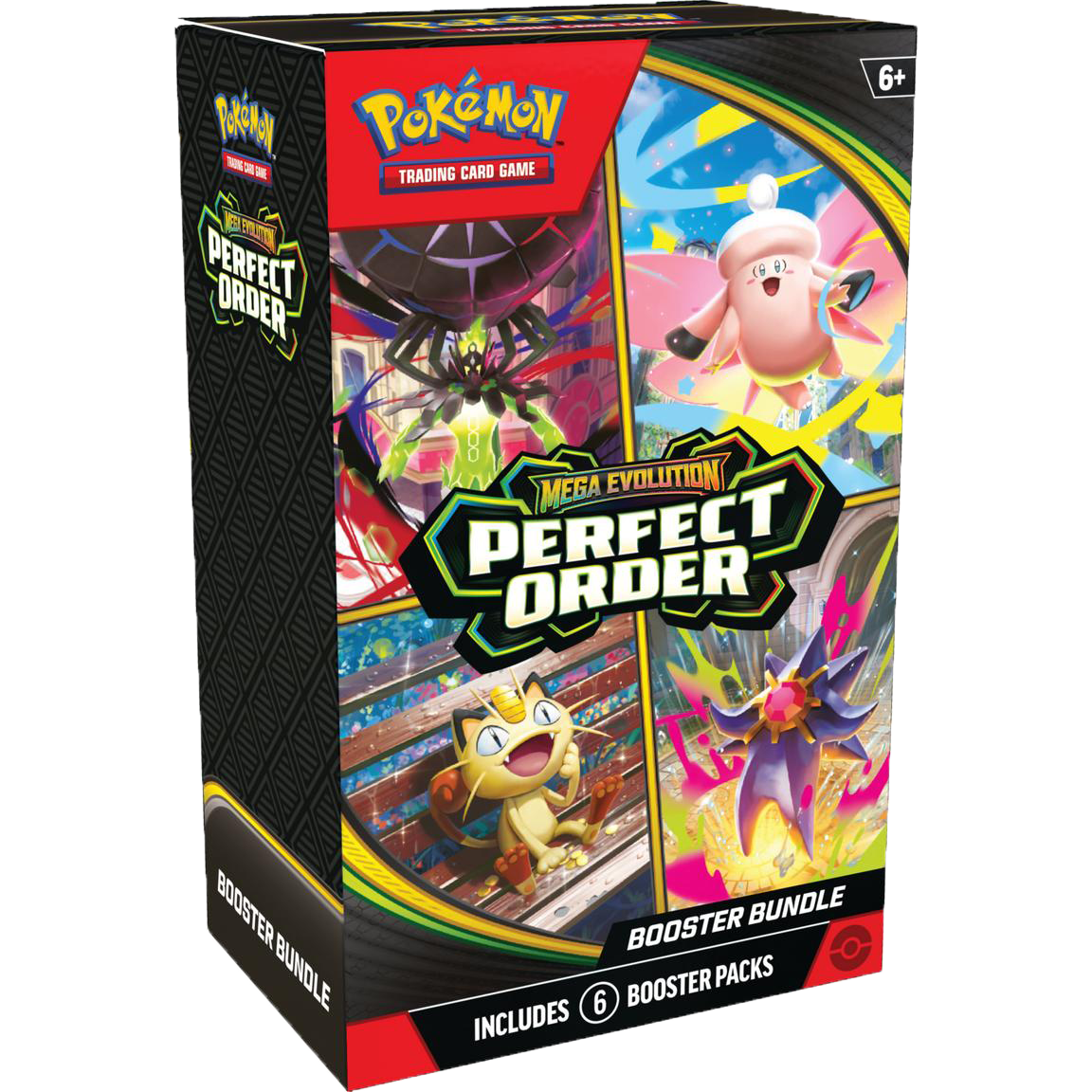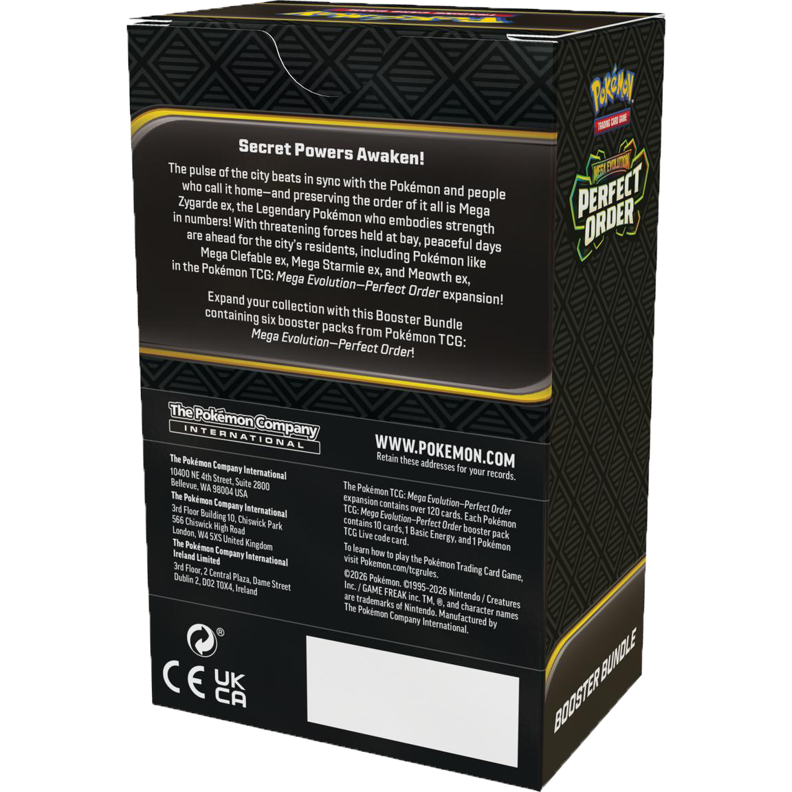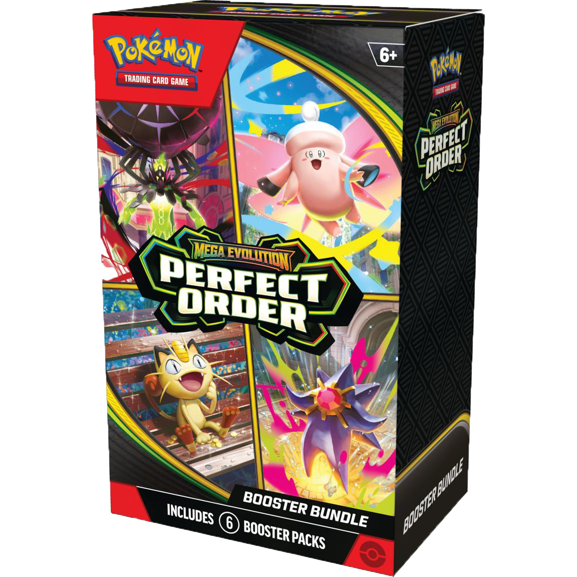 Contains six booster packs from Pokémon TCG: Mega Evolution—Perfect Order!