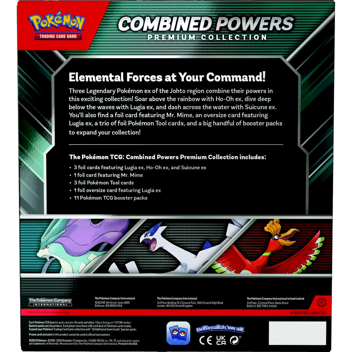 Elemental Forces at Your Command! Three Legendary Pokémon ex of the Johto region combine their powers in this exciting collection! Soar above the rainbow with Ho-Oh ex, dive deep below the waves with Lugia ex, and dash across the water with Suicune ex. You’ll also find a foil card featuring Mr. Mime, an oversize card featuring Lugia ex, a trio of foil Pokémon Tool cards, and a big handful of booster packs to expand your collection!