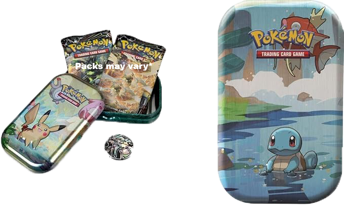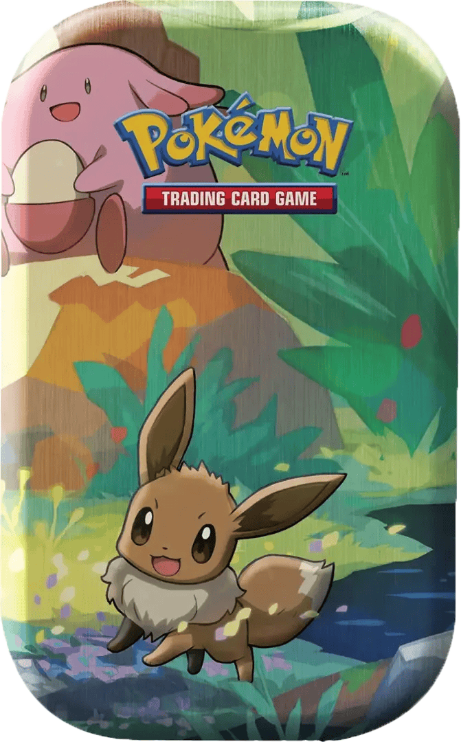• A Pokémon art card showing the Eevee art from this Mini Tin—collect and combine all 5 (sold separately)!