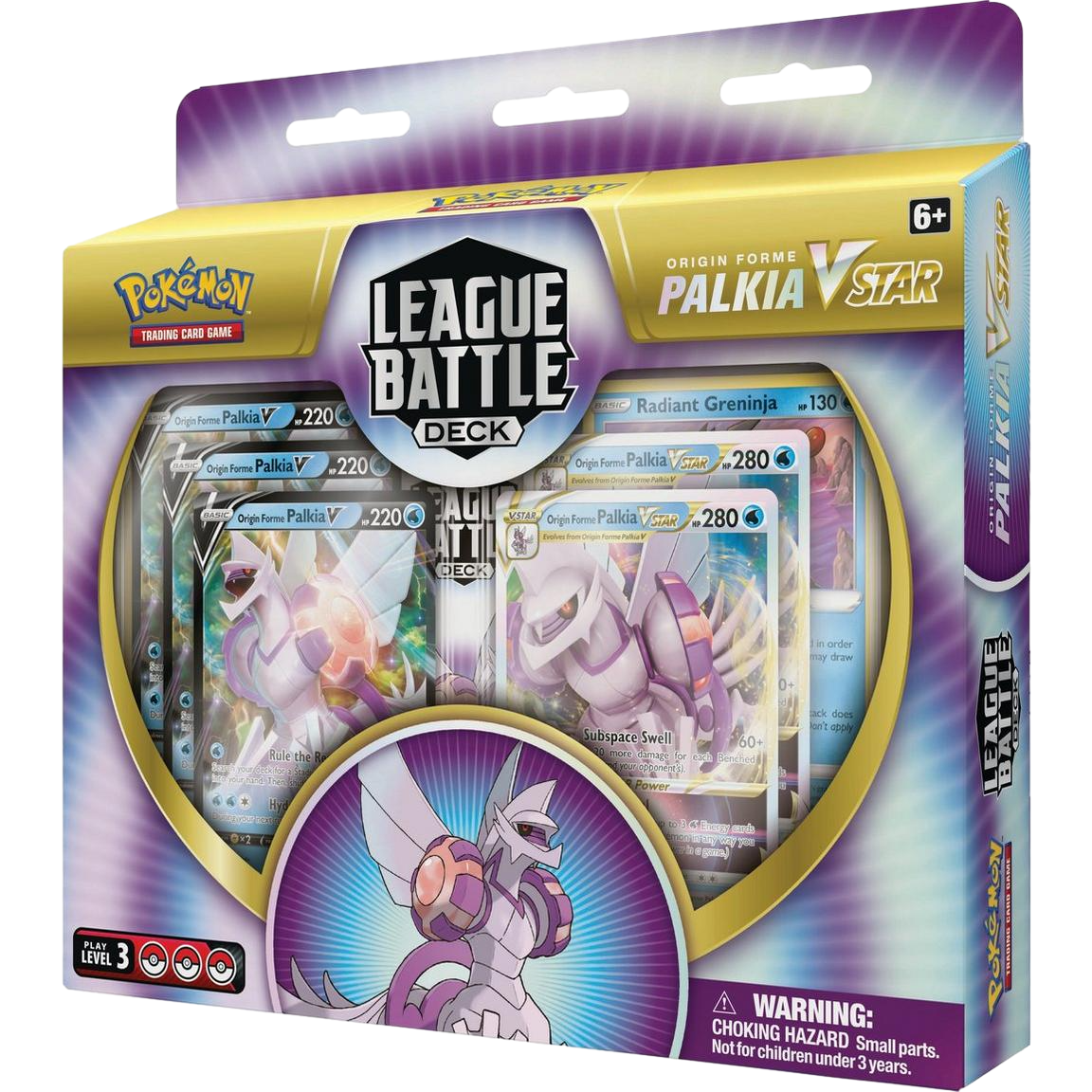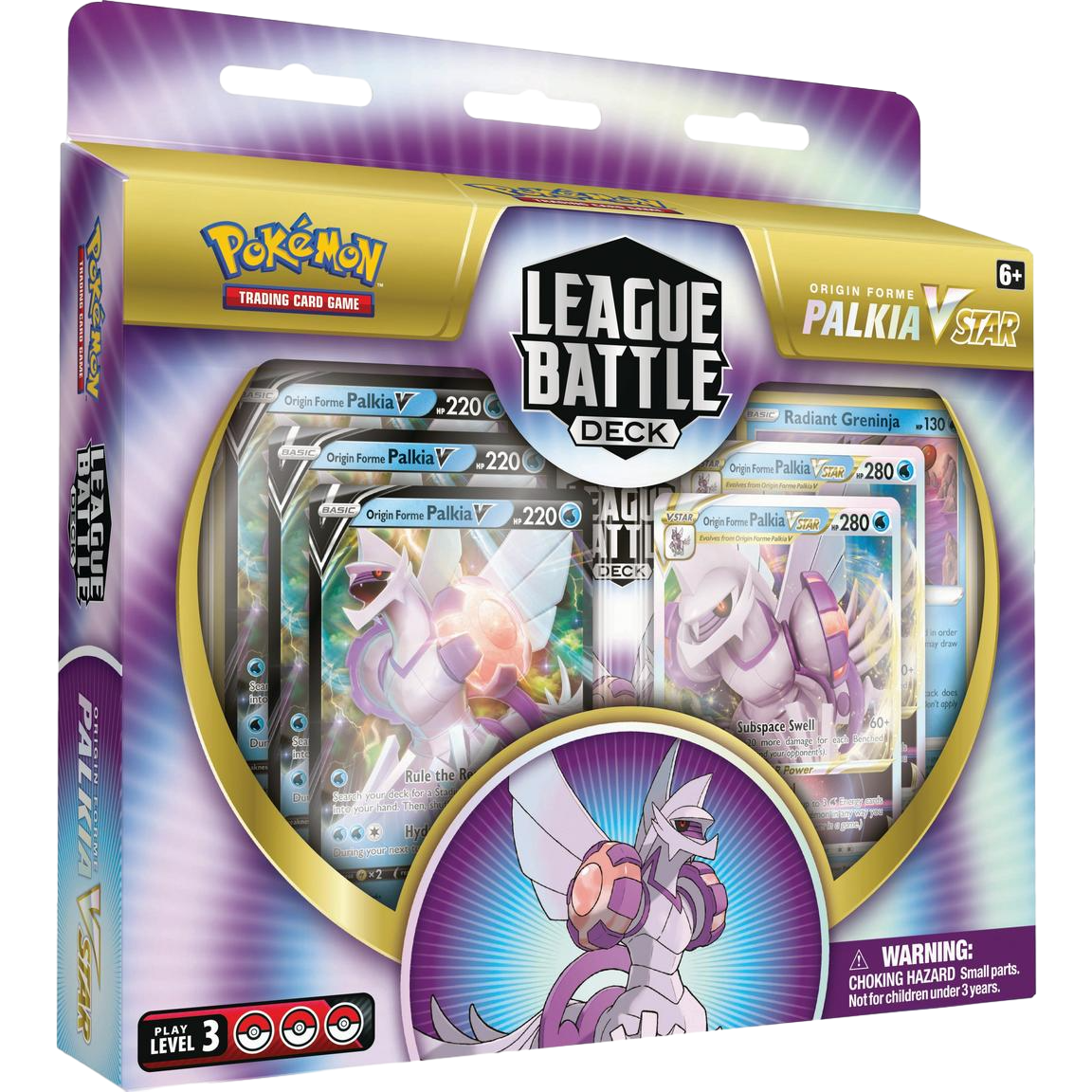 • What's Included - 60-card deck, 3 Origin Forme Palkia V foil cards, 2 Origin Forme Palkia VSTAR foil cards, 1 Radiant Greninja foil card, 1 deck box, 2 coin condition markers, 6 damage-counter dice and 1 competition-legal coin-flip die, 1 acrylic VSTAR marker, 1 strategy sheet, and a code card.