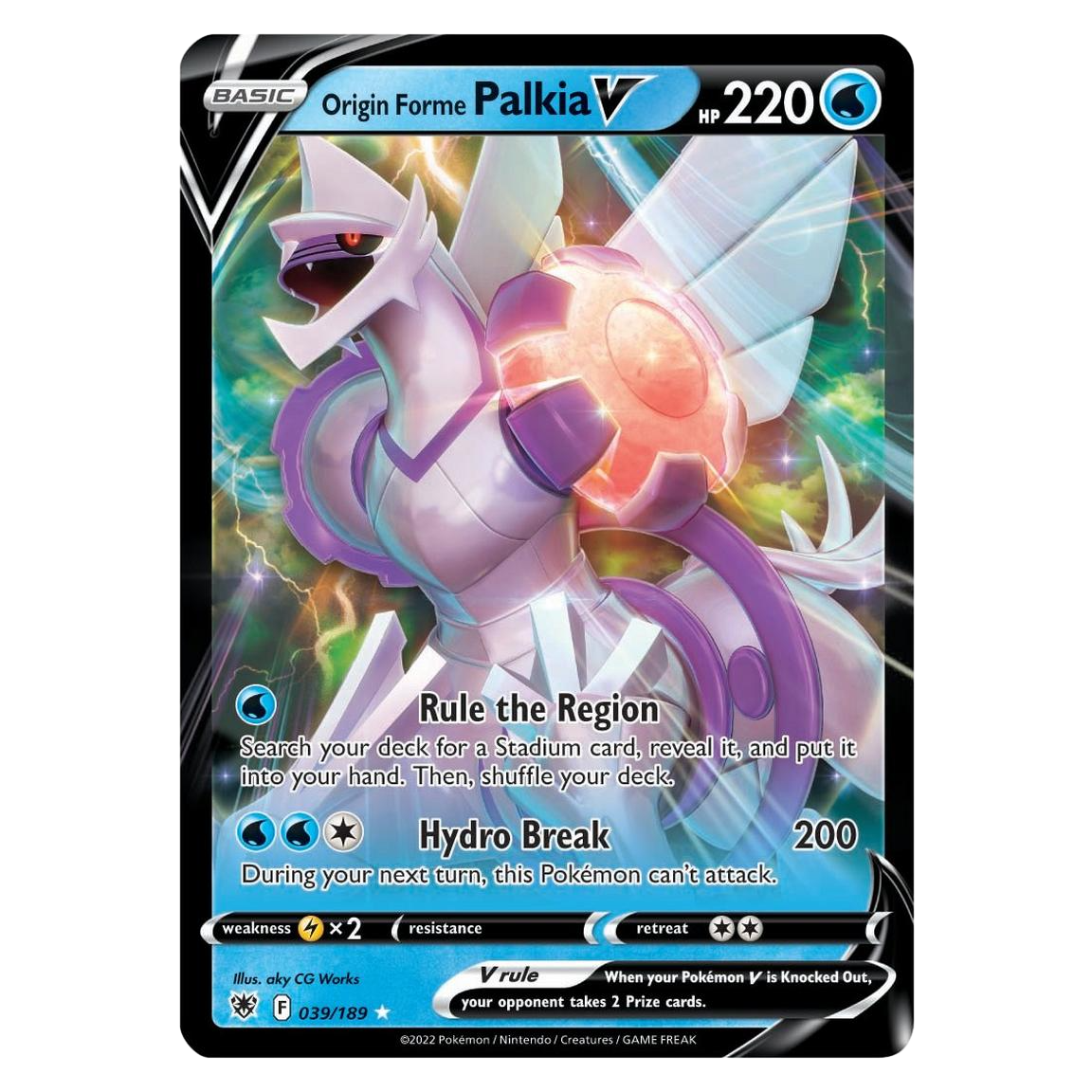 • 3 foil cards featuring Origin Forme Palkia V