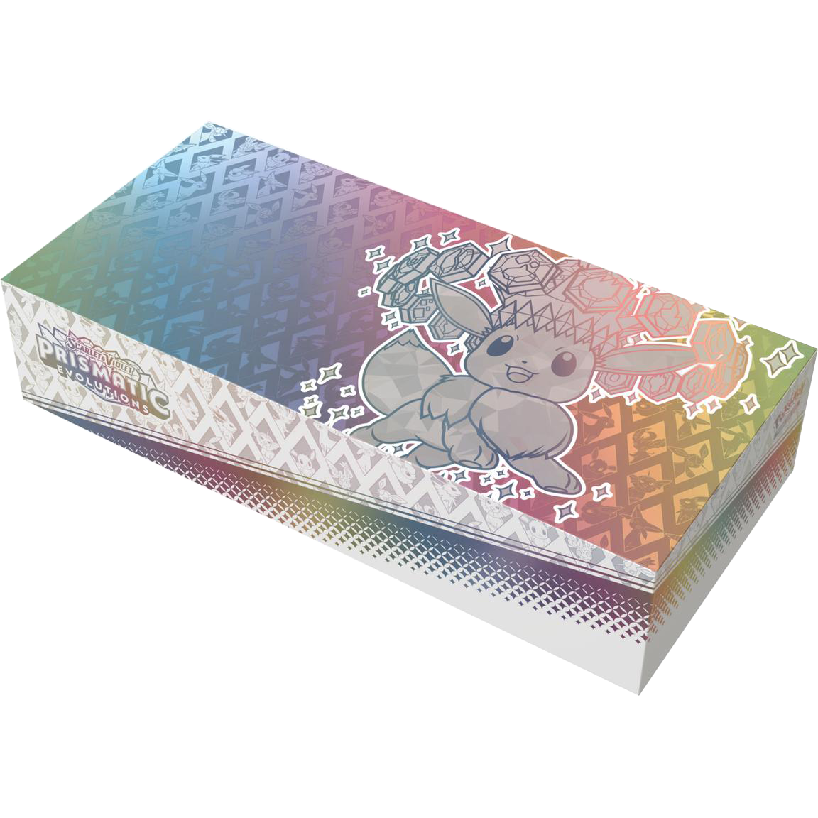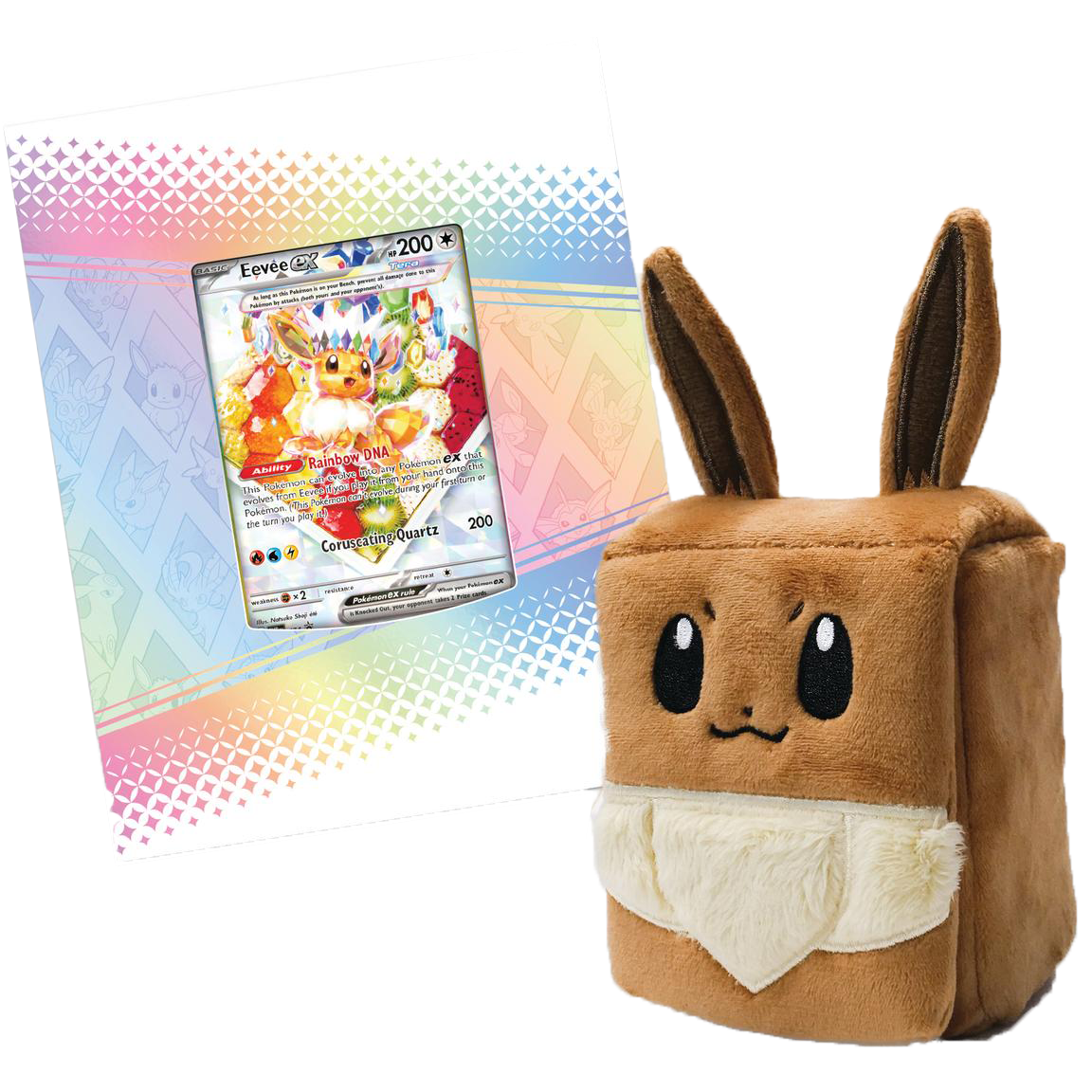 Eevee and its Evolutions spread friendship and joy everywhere they go, and with the adorable accessories in this collection, they’re sure to bring that same happiness to your next big game! Inside, you’ll find a special illustration rare-style promo card featuring Eevee as a Stellar Tera Pokémon ex, ready to evolve thanks to its Rainbow DNA. You also get a fuzzy Eevee deck box, a playmat and full set of card sleeves featuring amazing artwork of Eevee and its Evolutions, and more than a dozen booster packs from the special Scarlet & Violet—Prismatic Evolutions expansion.
