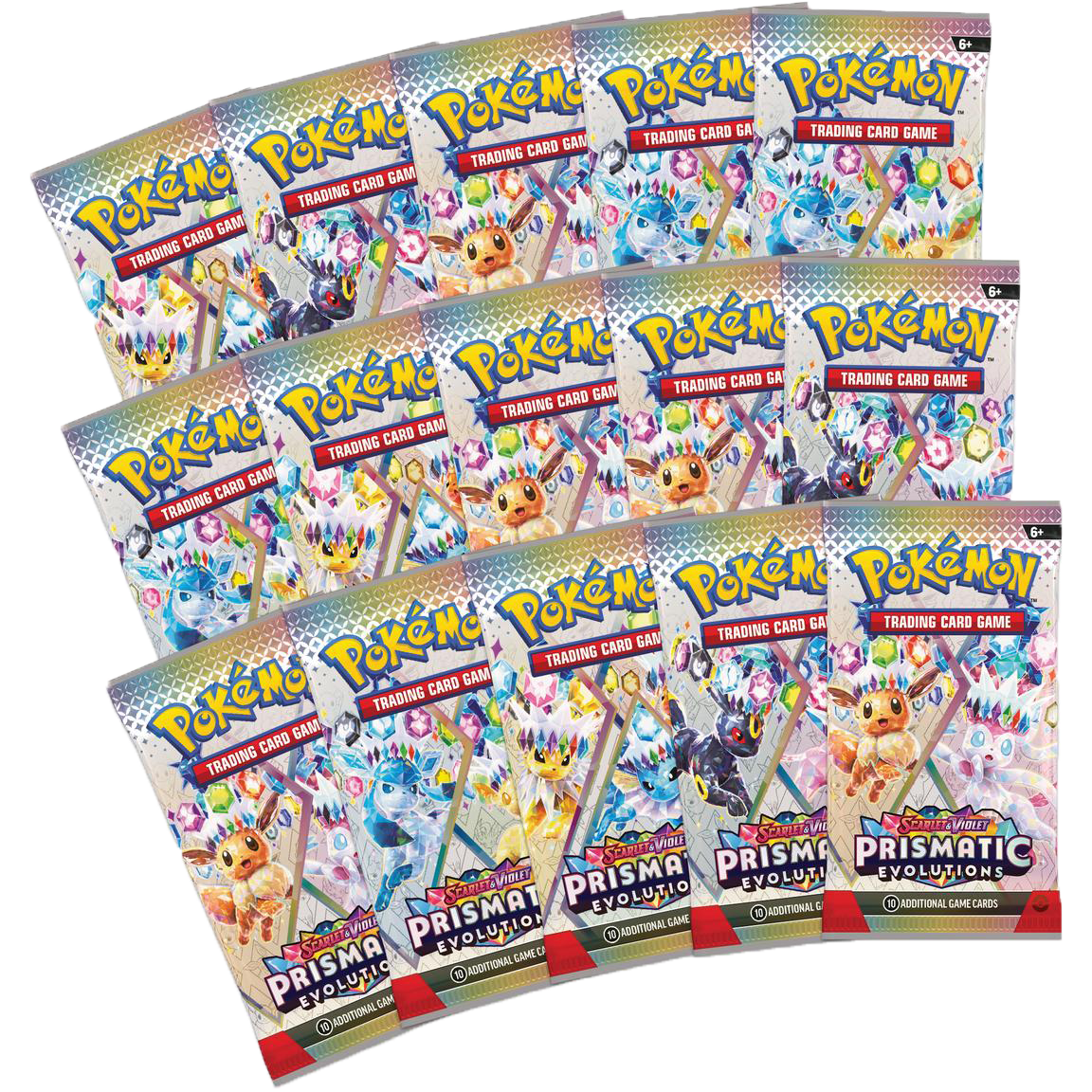 • 15 Pokémon TCG: Scarlet & Violet—Prismatic Evolutions booster packs