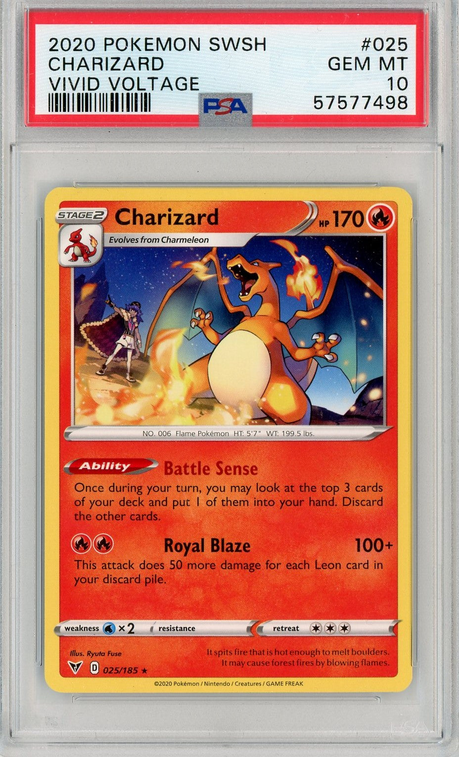 PSA 10 GEM MINT - Charizard 025/185 - Amazing Rare - Vivid Voltage 2020