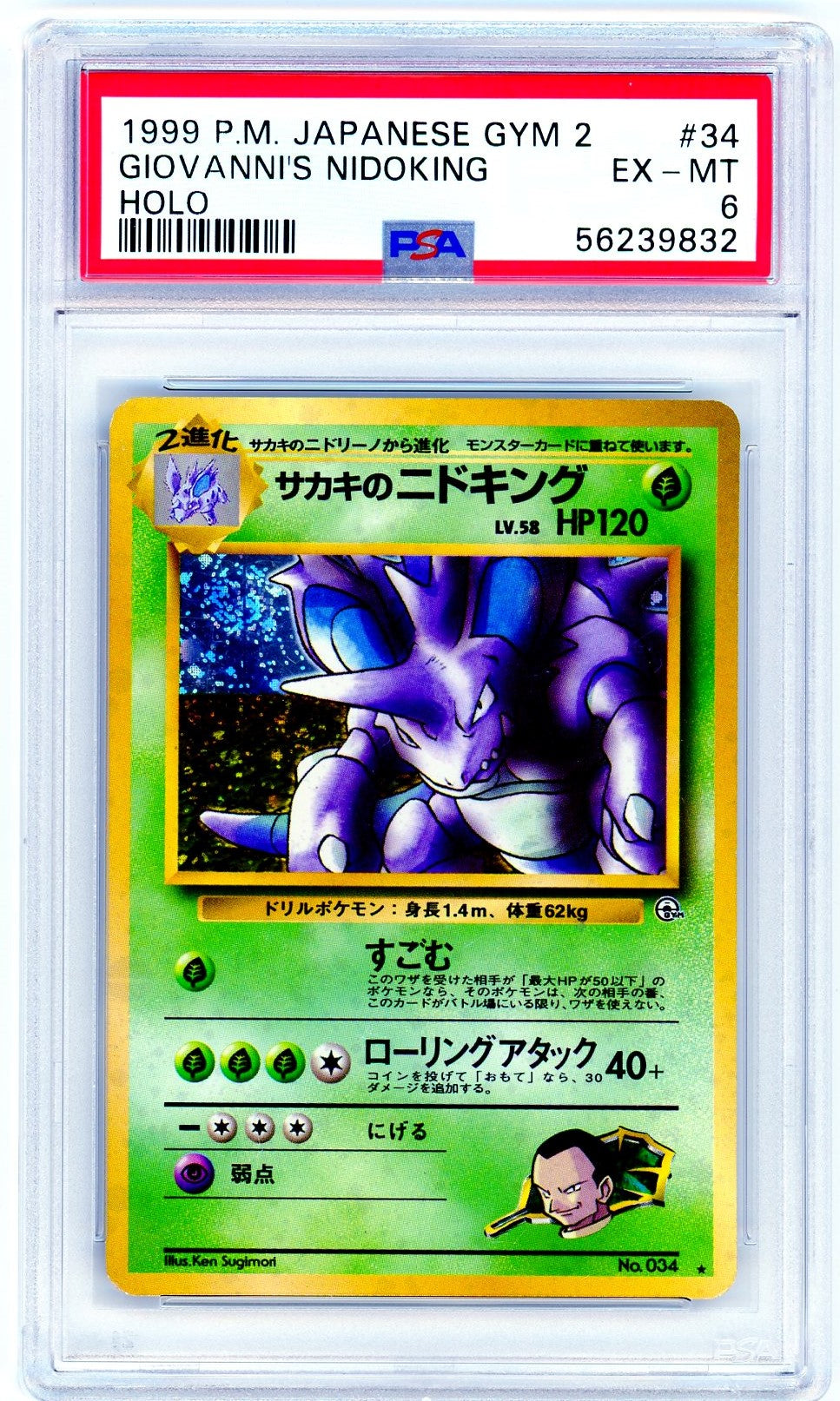 PSA (EX-MT 6) Giovanni'S Nidoking #34 (Japanese) - Pokemon Japanese Gym 2 (56239832)