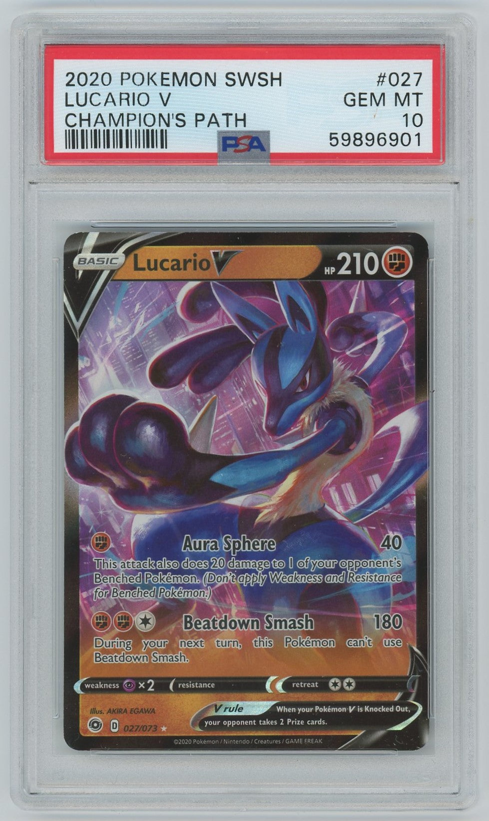 PSA (Gem MT 10) Lucario V #027 - Pokemon Sword & Shield Champion'S Path (#59896901)