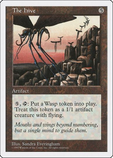 Description: 5, T: Put a Wasp token into play. Treat this token as a 1/1 artifact creature with flying.