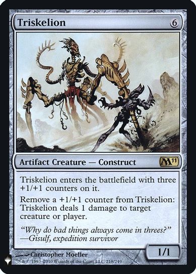 Description: Triskelion enters the battlefield with three +1/+1 counters on it.