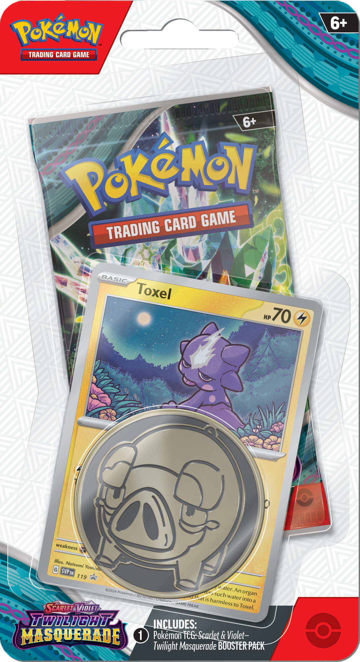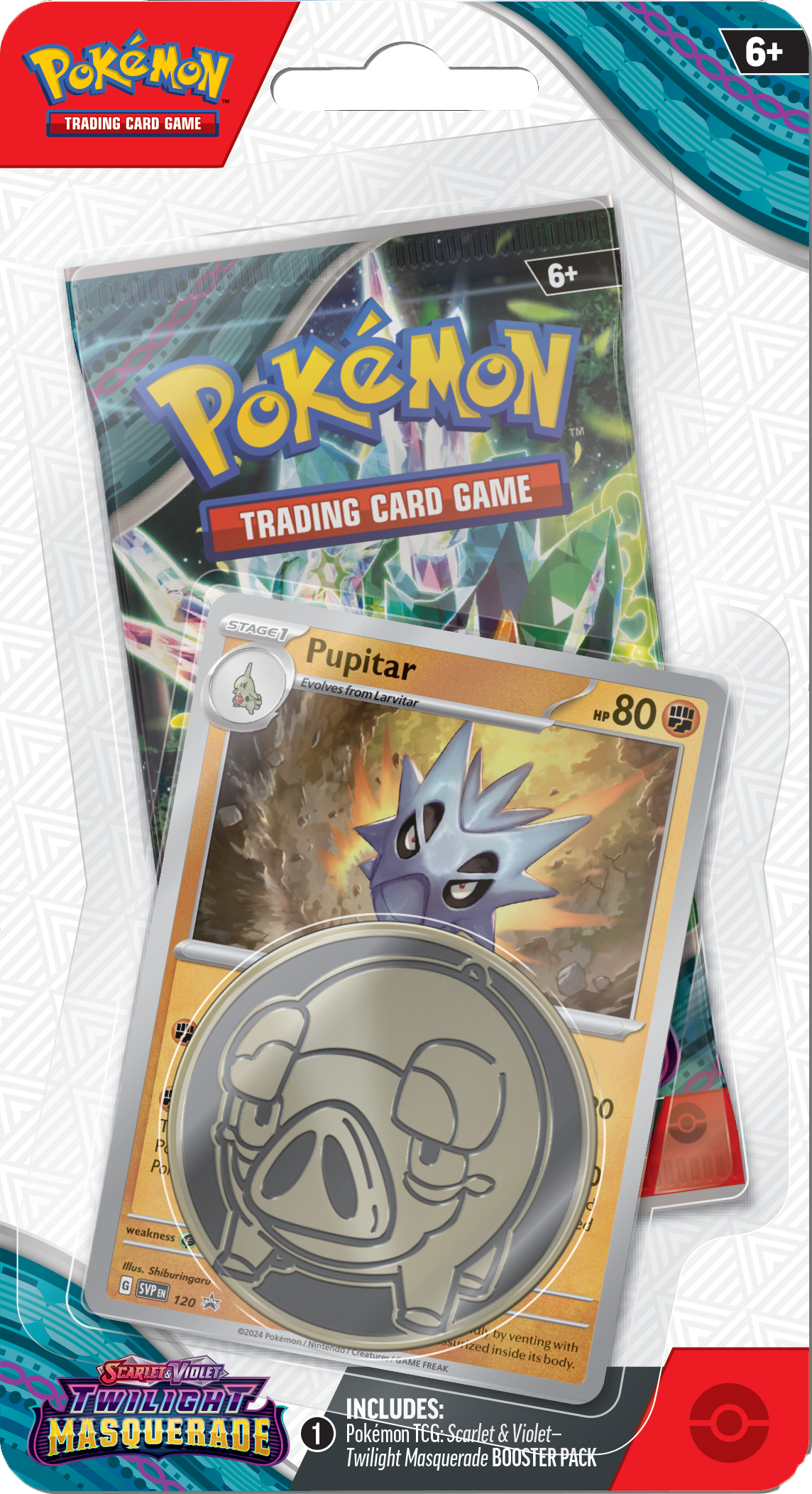 Welcome to the land of Kitakami, where people and Pokémon live harmoniously with nature. Folktales abound, but not all is as it seems... Uncover the mystery of the masked Legendary Pokémon Ogerpon, appearing as four fearsome types of Tera Pokémon ex, and team up with more newly discovered Pokémon, like Bloodmoon Ursaluna ex and Sinistcha ex. Growing in power, Greninja, Dragapult, and Magcargo dazzle as Tera Pokémon ex, and more ACE SPEC cards round out the festivities in the Pokémon TCG: Scarlet & Violet—Twilight Masquerade expansion!