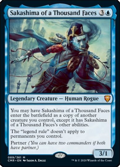 TCGplayer Tip: A Human Rogue hailing from Kamigawa, Sakashima can take any form and copy another creature you control on the battlefield. This ability has limitless combo potential and makes Sakashima a powerful partner commander.