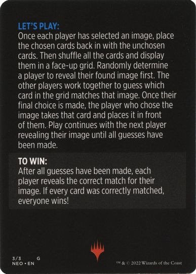 After all guesses have been made, each player reveals the correct match for their image. If every card was correctly matched, everyone wins!