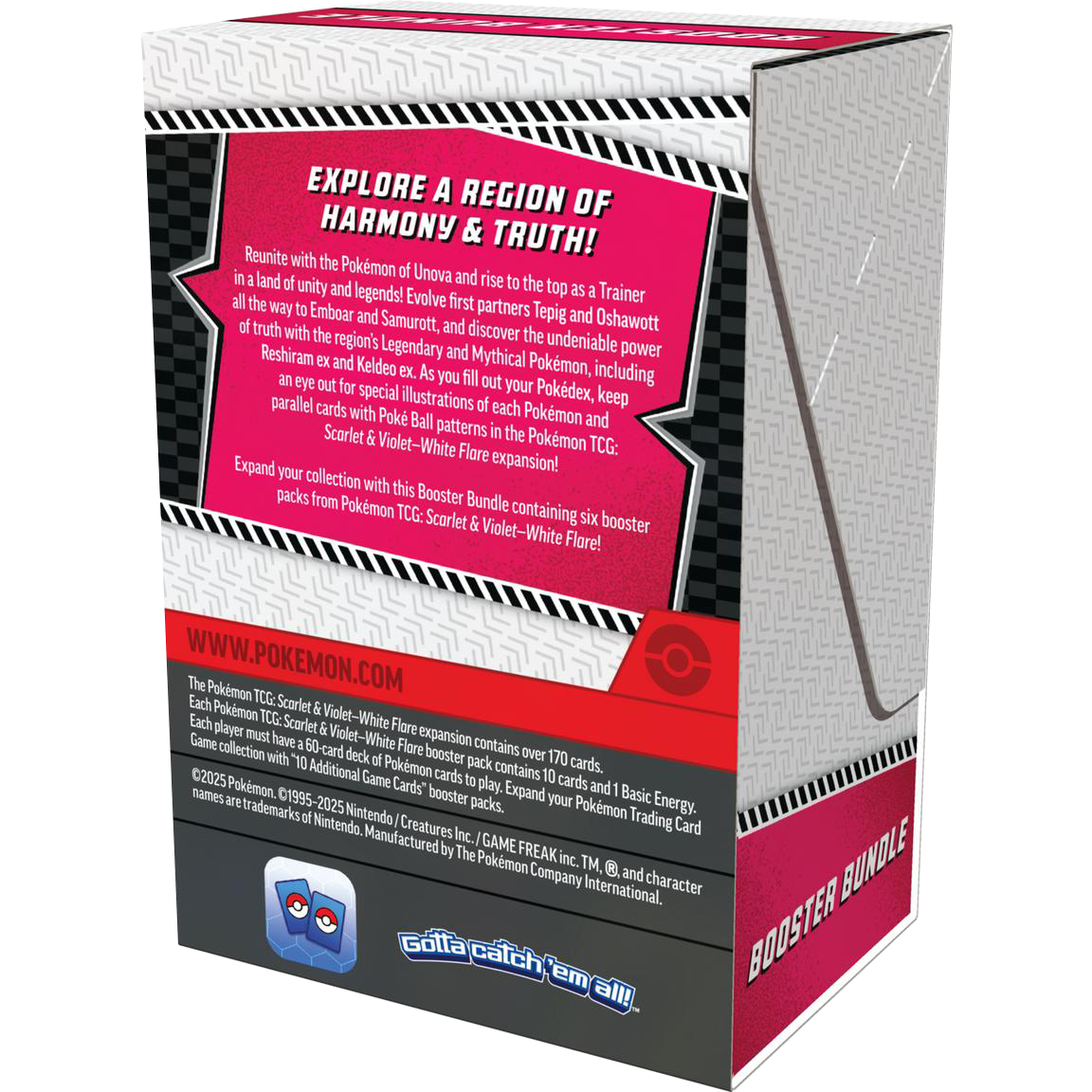 Reunite with the Pokémon of Unova and rise to the top as a Trainer in a land of unity and legends! Evolve first partners Tepig and Oshawott all the way to Emboar and Samurott, and discover the undeniable power of truth with the region’s Legendary and Mythical Pokémon, including Reshiram ex and Keldeo ex. As you fill out your Pokédex, keep an eye out for special illustrations of each Pokémon and parallel cards with Poké Ball patterns in the Pokémon TCG: Scarlet & Violet—White Flare expansion!